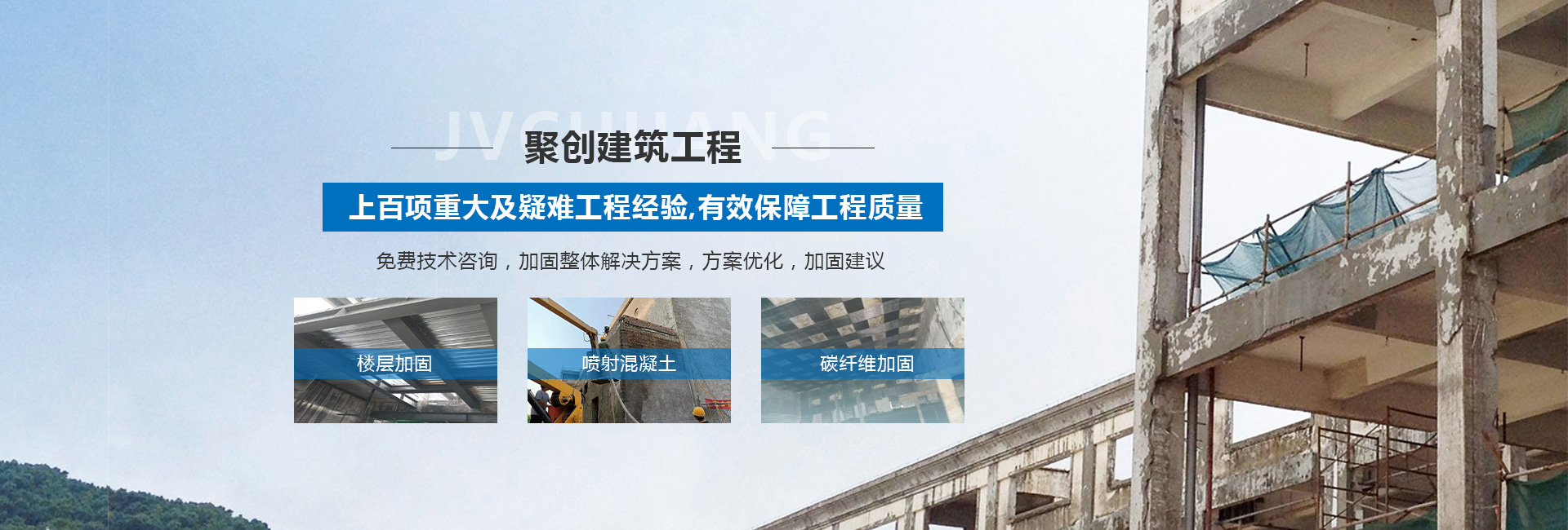 山西聚創(chuàng)建筑工程技術(shù)有限公司是一家涉足建筑工程改造加固、基礎(chǔ)加固、樓房糾偏、橋梁結(jié)構(gòu)加固補強、鋼結(jié)構(gòu)加固與安裝、靜力切割拆除、樓房增層、抗震加固、裝飾工程、工程檢測、設計、加固材料產(chǎn)品研發(fā)和新技術(shù)推廣或技術(shù)咨詢服務型加固企業(yè)等諸多領(lǐng)域。